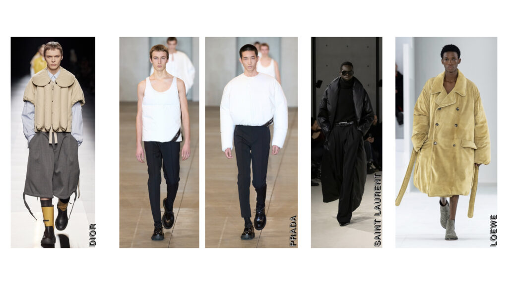 We shouldn’t be surprised that this has taken to the men’s runway with Loewe’s Fall 22 ultra puffy puffer jacket having a chokehold on the internet. We expect that this trend will only continue to increase in popularity between now till the launch of Fall Winter 2023. This is by far one of the most prominent trends, besides appearing as puffer jackets, Prada also decided to send a puffer long sleeved t-shirt and tank top down the runway. Other notable styles include Loewe’s puffer trench coat and Dior’s puffer vest that looks eerily similar to a floatation device.